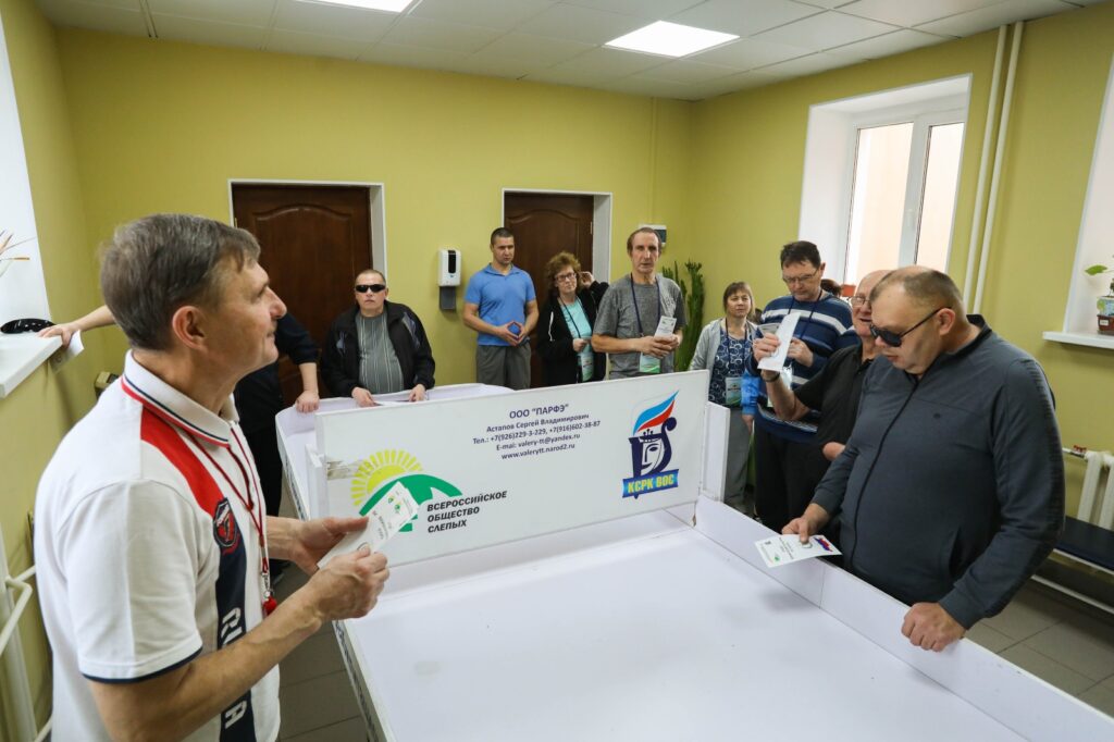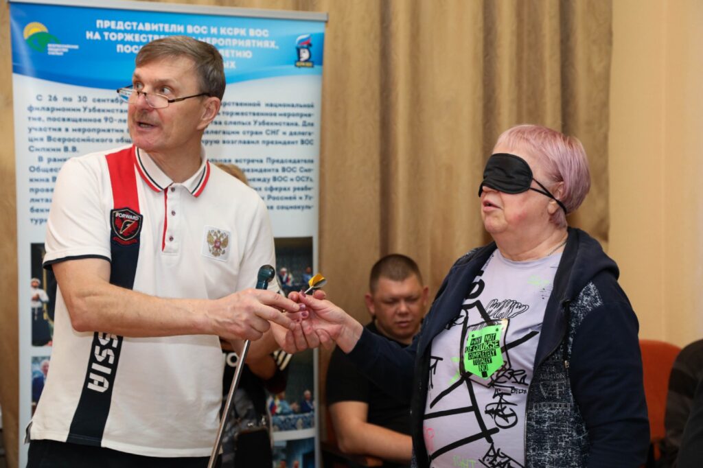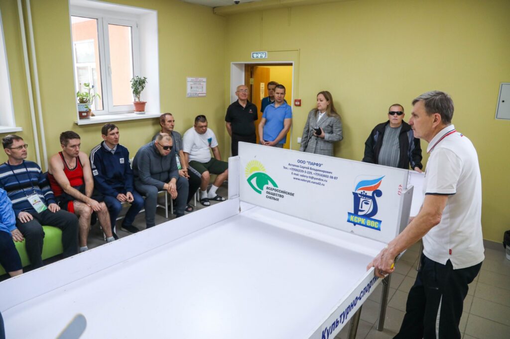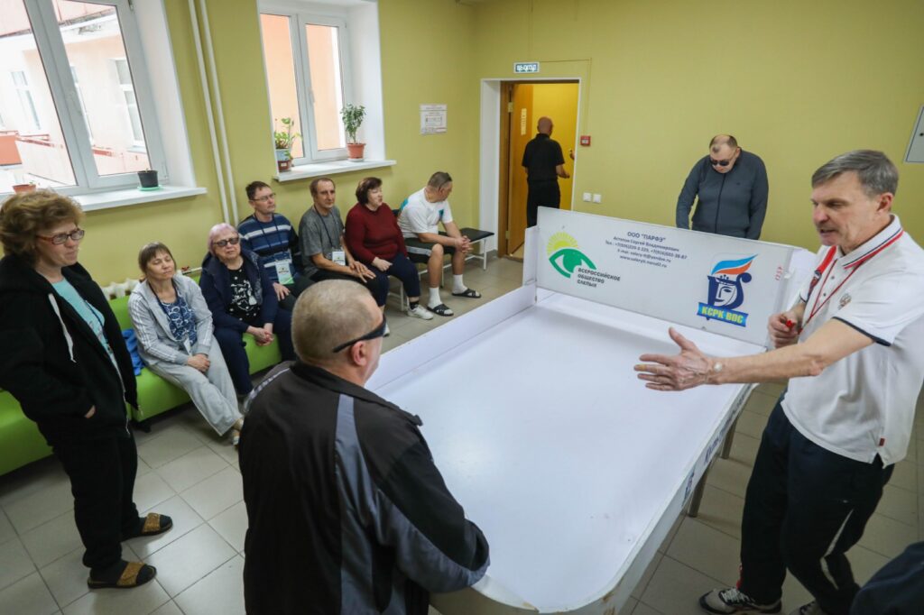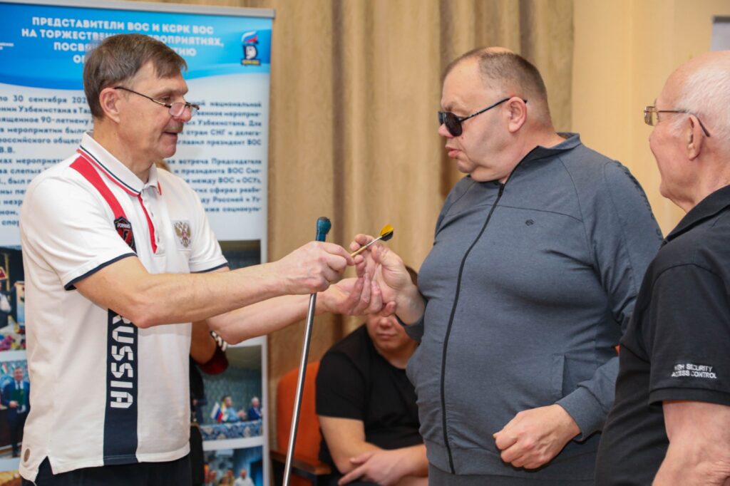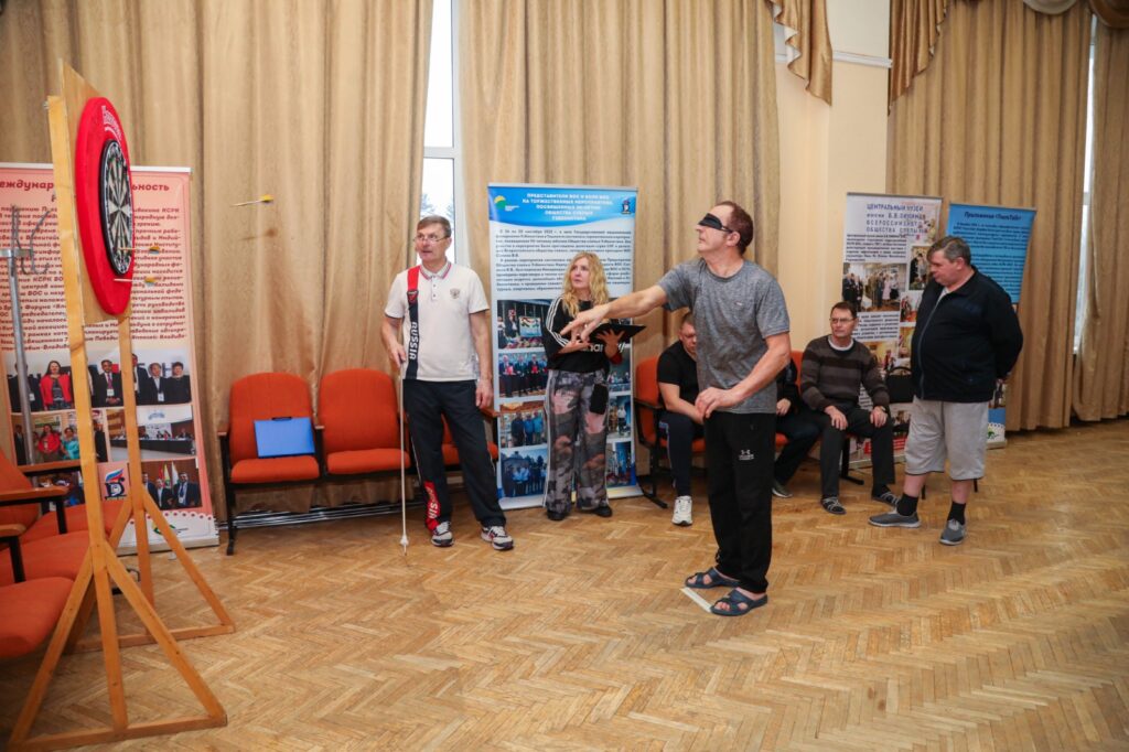 15 незрячих любителей физкультуры и спорта из Луганской и Донецкой народных республик, которым помогали на площадке волонтеры из Москвы и Московской области, показали отличные результаты в соревнованиях по настольному теннису для слепых и озвученному дартсу.