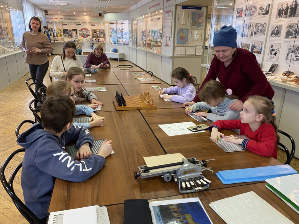 20 марта 2023 года в Центральном музее им. Б.В.Зимина ВОС состоялась обзорная экскурсия по музею и интерактивное занятие «Тифлоприборы и тифлопособия: «Трогать нужно!» для учащихся 2 «Э» класса ГБОУ №141 им. Героя Советского Союза Рихарда Зорге.