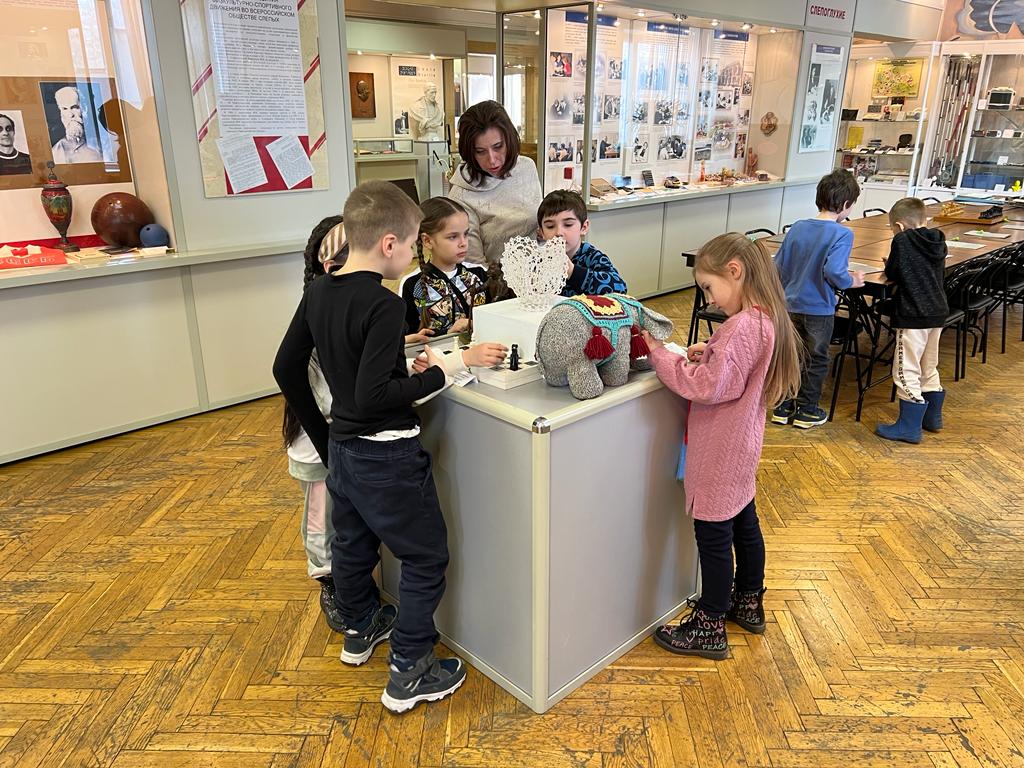 Несмотря на свой юный возраст, посетители музея активно интересовались экспозицией музея. Ребята узнали о существовании Всероссийского общества слепых, которое объединяет людей с проблемами зрения. Смогли подержать в руках продукцию предприятий, изготовленную руками незрячих людей, увидели звуковые мячи, велотандем, биатлонную установку для слепых. Познакомились с творческими работами незрячих скульпторов, художников, резчиков по дереву и т.п. В рамках интерактивного занятия ребята узнали правилах общения с незрячими, просмотрели фрагмент фильма с тифлокомментарием, попробовали узнать по запаху специи и наощупь определить изображения на тактильных тифлопособиях. Также был проведен мастер-класс по письму шрифтом Брайля и ходьбы с белой тростью.