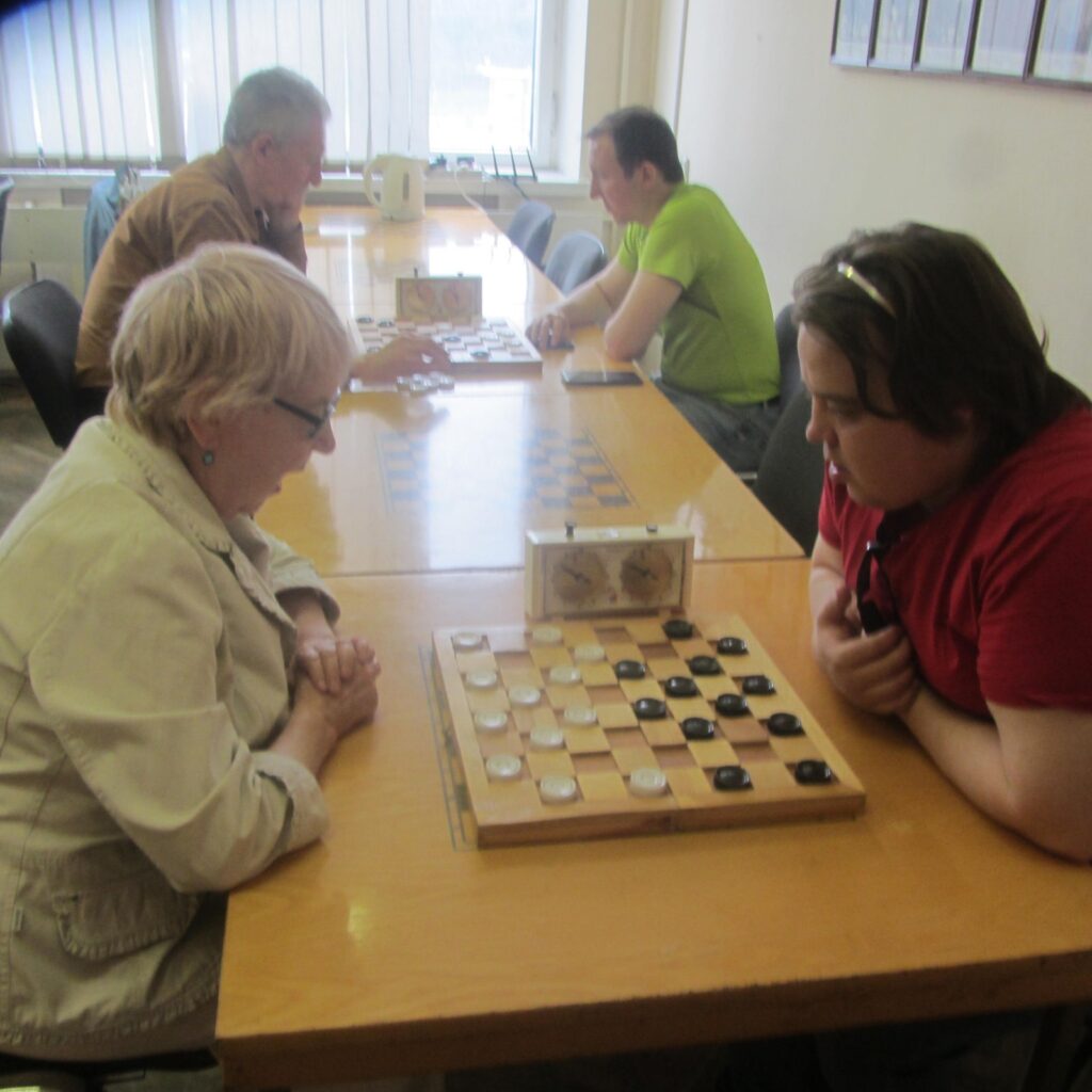 В субботу 8 июля в шахматном клубе КСРК ВОС прошли открытые соревнования по шашкам среди инвалидов по зрению, в которых приняли участие 10 спортсменов. Соревнования проводились по швейцарской системе в 7 туров. В результате упорной борьбы победителем турнира, с результатом 6,5 очков, стала Татьяна Байкова. Второе место у Андрея Базюка – 5,5 очка, на третьем месте с 5 очками расположился Николай Хапров.