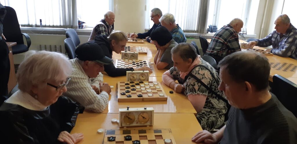 В субботу 14 октября в шахматном клубе КСРК ВОС прошли открытые соревнования по шашкам среди инвалидов по зрению, в которых приняли участие 15 спортсменов. Соревнования прошли по швейцарской системе в 7 туров. Вне конкуренции, с 6 очками из 7 возможных, оказался кандидат в мастера Анатолий Комаров, не давший ни одного шанса своим соперникам. Второе и третье места пришлось определять по коэффициенту Бухгольца, так как два участника набрали по 5 очков. Дополнительные показатели оказались в пользу кандидата в мастера спорта Анатолия Гордеева – у него второе место. Третье же досталось Галине Николаевой.