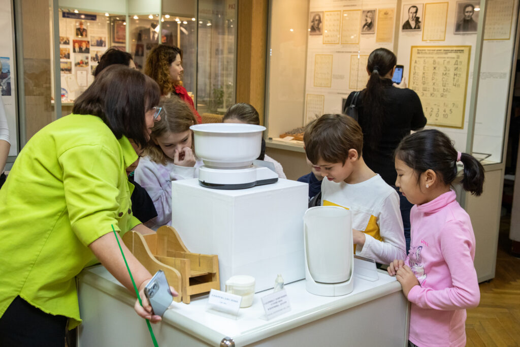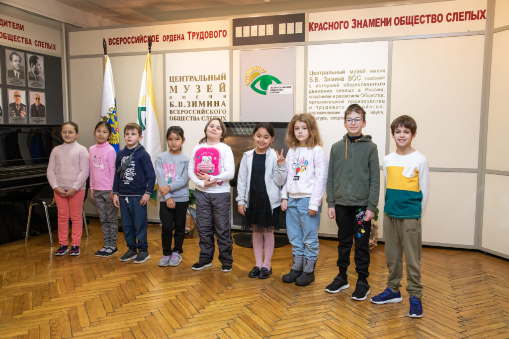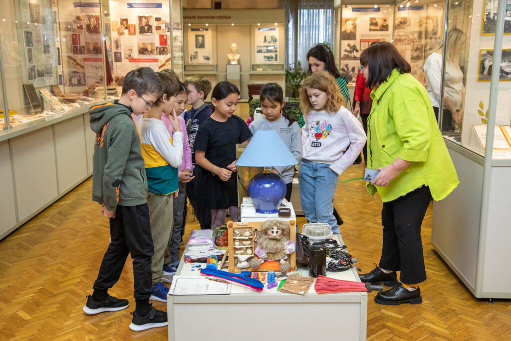 30 октября 2023 года в Центральном музее им. Б.В. Зимина ВОС состоялась обзорная экскурсия по музею и интерактивное занятие «Тифлоприборы и тифлопособия: «Трогать нужно!» для обучающихся 2 класса «Б» и 2 класса «Г» ГБОУ школы №141 им. Героя Советского Союза Рихарда Зорге. Несмотря на свой юный возраст посетители музея проявили большой интерес к экспонатам музея. Экскурсовод познакомил ребят деятельностью Всероссийского общества слепых, которое объединяет людей с проблемами зрения. Юные посетители смогли подержать в руках продукцию предприятий, изготовленную руками незрячих людей, увидели звуковые мячи, велотандем, биатлонную установку для слепых. Самостоятельно попробовали воспользоваться такими тифлоприборами, как весы, определитель цвета и света, определитель уровня жидкости и т.п., узнали, с помощью каких специальных приспособлений учатся их незрячие сверстники. Познакомились с творческими работами инвалидов по зрению. В рамках интерактивного занятия ребята узнали правила общения с незрячими, просмотрели фрагмент фильма с тифлокомментарием, попробовали определить по запаху специи и на ощупь – изображения на тактильных тифлопособиях. Также был проведён мастер-класс по письму шрифтом Брайля и ходьбе с белой тростью.