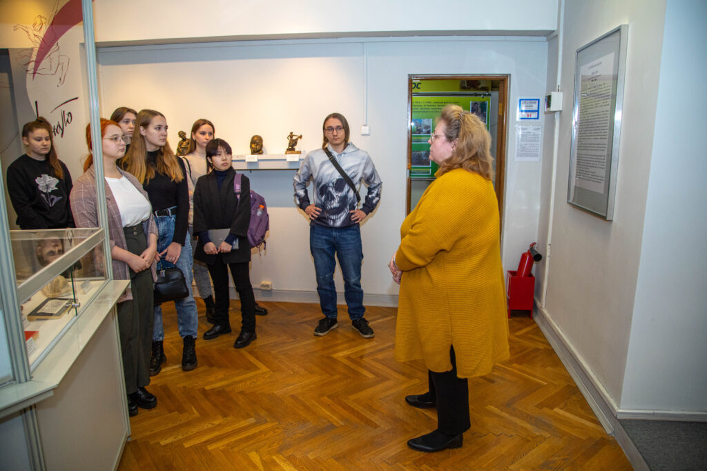 22 ноября 2023 года в Центральном музее им. Б.В. Зимина ВОС состоялась обзорная экскурсия по музею и интерактивное занятие «Тифлоприборы и тифлопособия: «Трогать нужно!» для студентов колледжа Московского университета им. С.Ю. Витте, групп ПСО 21-09, ПСО – 22-11, ПСО 23-11. Экскурсия в музей была организована в рамках изучаемых студентами дисциплин «Право и организация социального обеспечения» и «Организационное обеспечение деятельности учреждений социальной защиты населения, органов пенсионного фонда Российской Федерации».