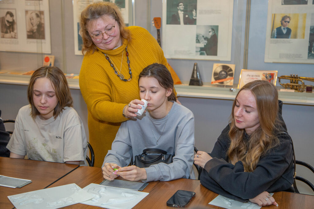 22 ноября 2023 года в Центральном музее им. Б.В. Зимина ВОС состоялась обзорная экскурсия по музею и интерактивное занятие «Тифлоприборы и тифлопособия: «Трогать нужно!» для студентов колледжа Московского университета им. С.Ю. Витте, групп ПСО 21-09, ПСО – 22-11, ПСО 23-11. Экскурсия в музей была организована в рамках изучаемых студентами дисциплин «Право и организация социального обеспечения» и «Организационное обеспечение деятельности учреждений социальной защиты населения, органов пенсионного фонда Российской Федерации».