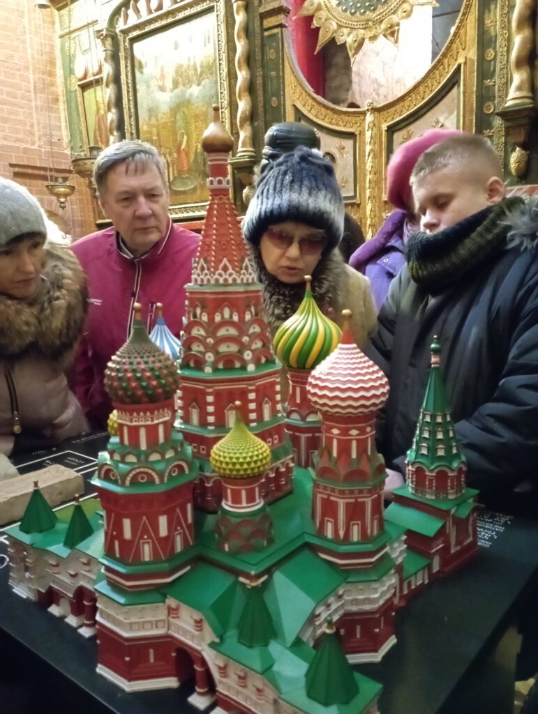 18 февраля очередная группа посетила с экскурсией Покровский Собор. Давайте привыкать к этому названию «Чуда чудного, дива дивного», как отзывались об этом храме иноземцы, побывавшие в Москве в 16-17 веке. Напомним, что церковь Василия Блаженного, которая дала собору второе, ставшее более известным, название, была пристроена к Собору лишь в 1588 году на месте погребения Святого. Строительство самого Собора завершилось в 1561 году. Возводили этот гигант о девяти верхах (девять церквей) всего шесть лет, и то только в тёплое время года. Впрочем, изначально храм не производил впечатление монументальности. Он как будто взлетал в небо: ввысь был устремлён шатёр центральной церкви, лёгкости и изящества добавляли открытые галереи и крыльца. Недаром, те же иностранцы говорили о нём, как о преизящной церкви возле Кремля.