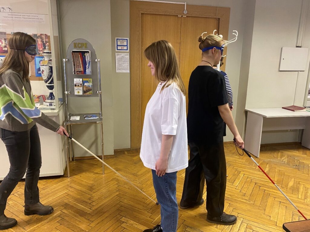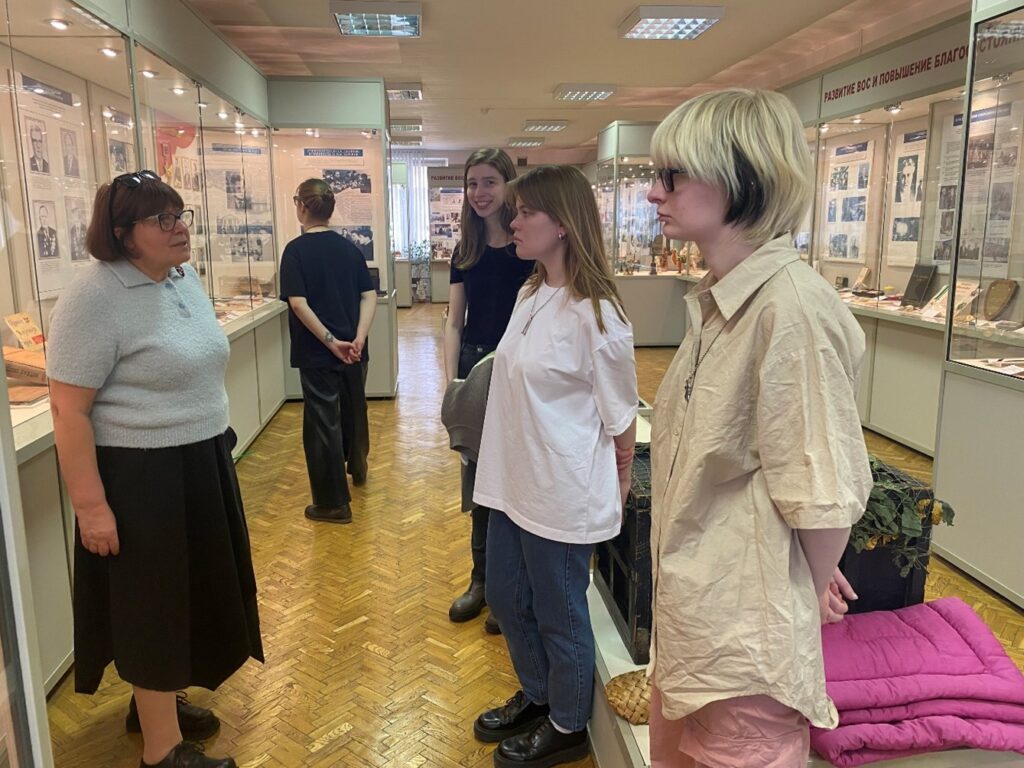 16 апреля 2024 года в Центральном музее им. Б.В. Зимина ВОС состоялась обзорная экскурсия по музею и интерактивное занятие «Тифлоприборы и тифлопособия: «Трогать нужно!» для учащихся 5 курса Литературного института им. А.М. Горького, проходящих практику в звуковом журнале ВОС «Диалог». Экскурсанты смогли познакомиться с историей создания и развития Общества в начале 20 в., деятельностью ВОС в годы Великой Отечественной войны, узнали о деятельности Общества в современных условиях. Большое внимание студентами-практикантами было уделено истории развития периодической печати ВОС, а также знакомству с творчеством незрячих писателей и поэтов. В рамках интерактивного занятия посетителям было рассказано об общих правилах общения с незрячими, проведён мастер-класс по письму шрифтом Брайля и ходьбы с белой тростью. Также наши гости смогли по достоинству оценить всю многогранность и разноплановость творческих работ, выполненных руками незрячих на выставке актива МГО ВОС «Красота своими руками», посвящённой 80-летию Победы в Великой Отечественной войне 1941-1945 гг. и 100-летию Всероссийского общества слепых.