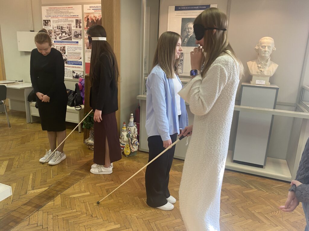 3 октября 2024 года в Центральном музее им. Б.В. Зимина ВОС состоялась обзорная экскурсия по музею и интерактивное занятие «Тифлоприборы и тифлопособия: «Трогать нужно!» для студентов 2 курса очной формы обучения «Специальное (дефектологическое) образование, профиль «Тифлопедагогика» в рамках практики по «Психолого-педагогическому сопровождению лиц с ОВЗ» Института детства МГПУ. Посетители музея смогли познакомиться с историей создания и развития Общества, профессиональной реабилитацией инвалидов по зрению, достижениями незрячих в науке, культуре и спорте. Еще одной значимой темой экскурсии стало знакомство с техническими средствами реабилитации, как для культурно-бытового назначения, ориентирования, обучения, так и для занятий трудовой деятельностью. В рамках интерактивного занятия состоялось знакомство с общими правилами общения с незрячими, работа с тифлопособиями, проведены мастер-классы по письму шрифтом Брайля и ходьбы с белой тростью.