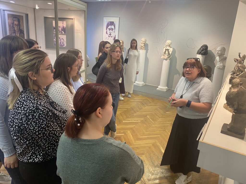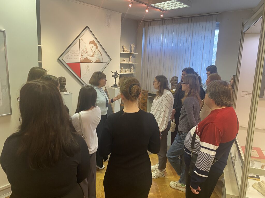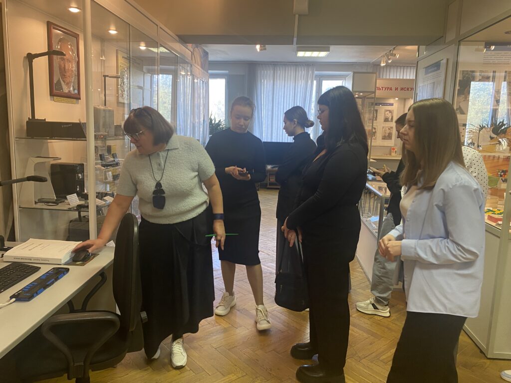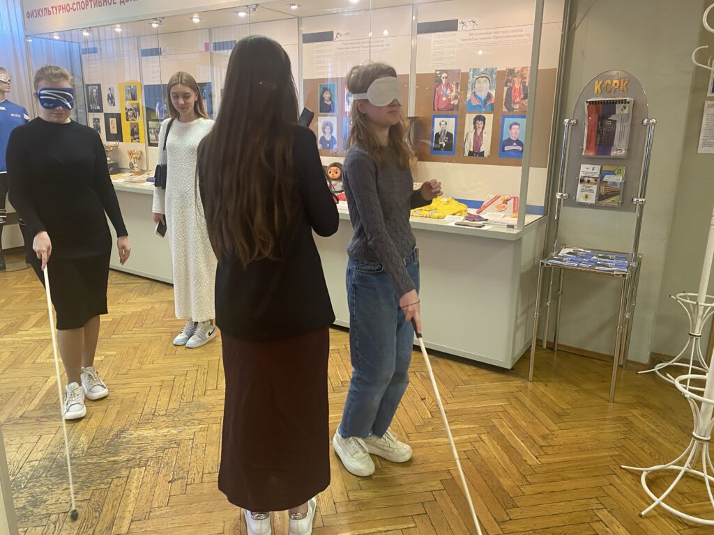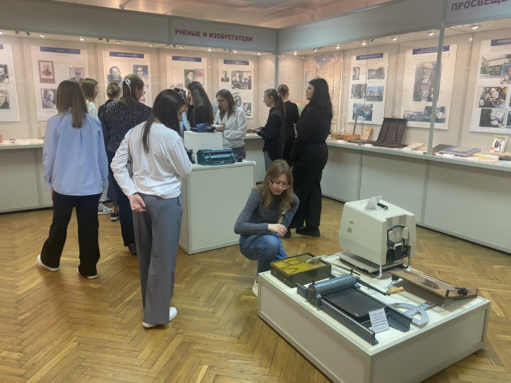 3 октября 2024 года в Центральном музее им. Б.В. Зимина ВОС состоялась обзорная экскурсия по музею и интерактивное занятие «Тифлоприборы и тифлопособия: «Трогать нужно!» для студентов 2 курса очной формы обучения «Специальное (дефектологическое) образование, профиль «Тифлопедагогика» в рамках практики по «Психолого-педагогическому сопровождению лиц с ОВЗ» Института детства МГПУ. Посетители музея смогли познакомиться с историей создания и развития Общества, профессиональной реабилитацией инвалидов по зрению, достижениями незрячих в науке, культуре и спорте. Еще одной значимой темой экскурсии стало знакомство с техническими средствами реабилитации, как для культурно-бытового назначения, ориентирования, обучения, так и для занятий трудовой деятельностью. В рамках интерактивного занятия состоялось знакомство с общими правилами общения с незрячими, работа с тифлопособиями, проведены мастер-классы по письму шрифтом Брайля и ходьбы с белой тростью.