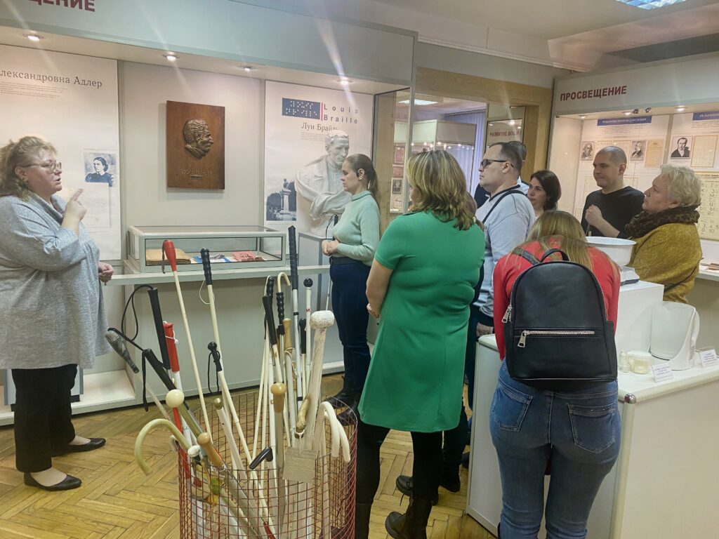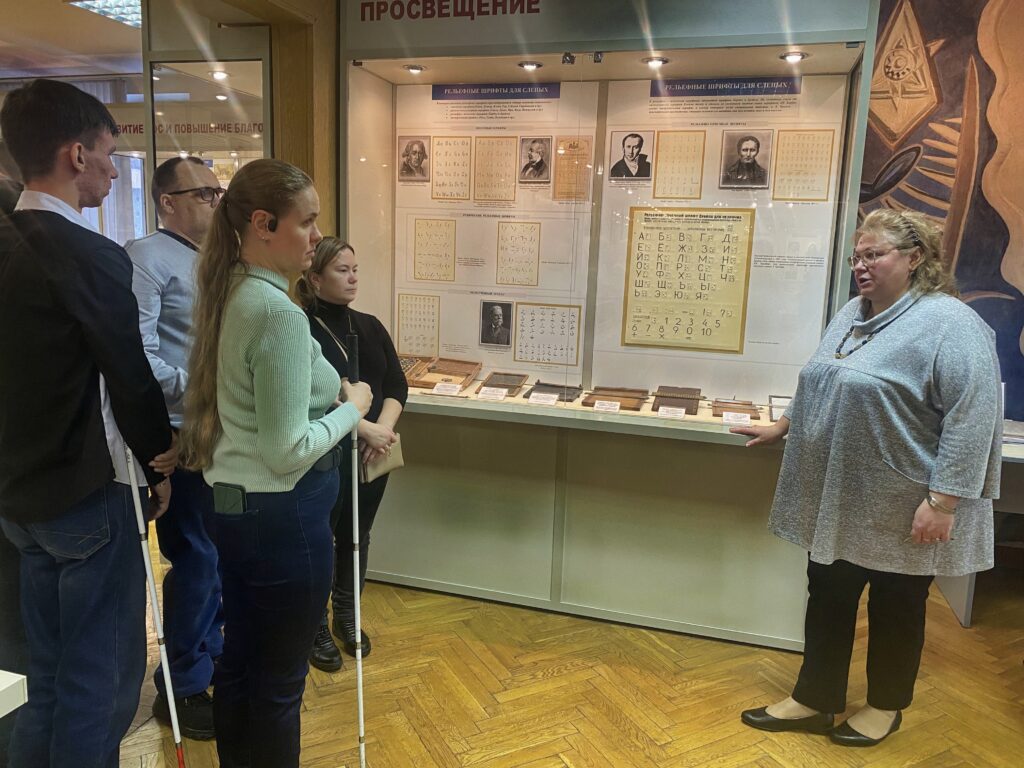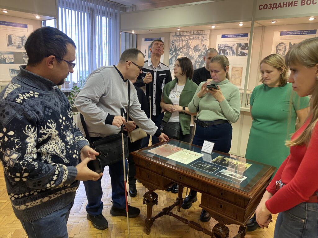15 ноября 2024 года в Центральном музее им. Б.В. Зимина ВОС состоялась обзорная экскурсия с тематическим уклоном на историю ВОС для группы слушателей, обучающихся в Институте профессиональной реабилитации и подготовки персонала ВОС «Реакомп». Посещение музея состоялось в рамках обучения по программе «Менеджмент в социальной сфере, 1 этап» (Реабилитация инвалидов по зрению и подготовка их к управленческой деятельности).