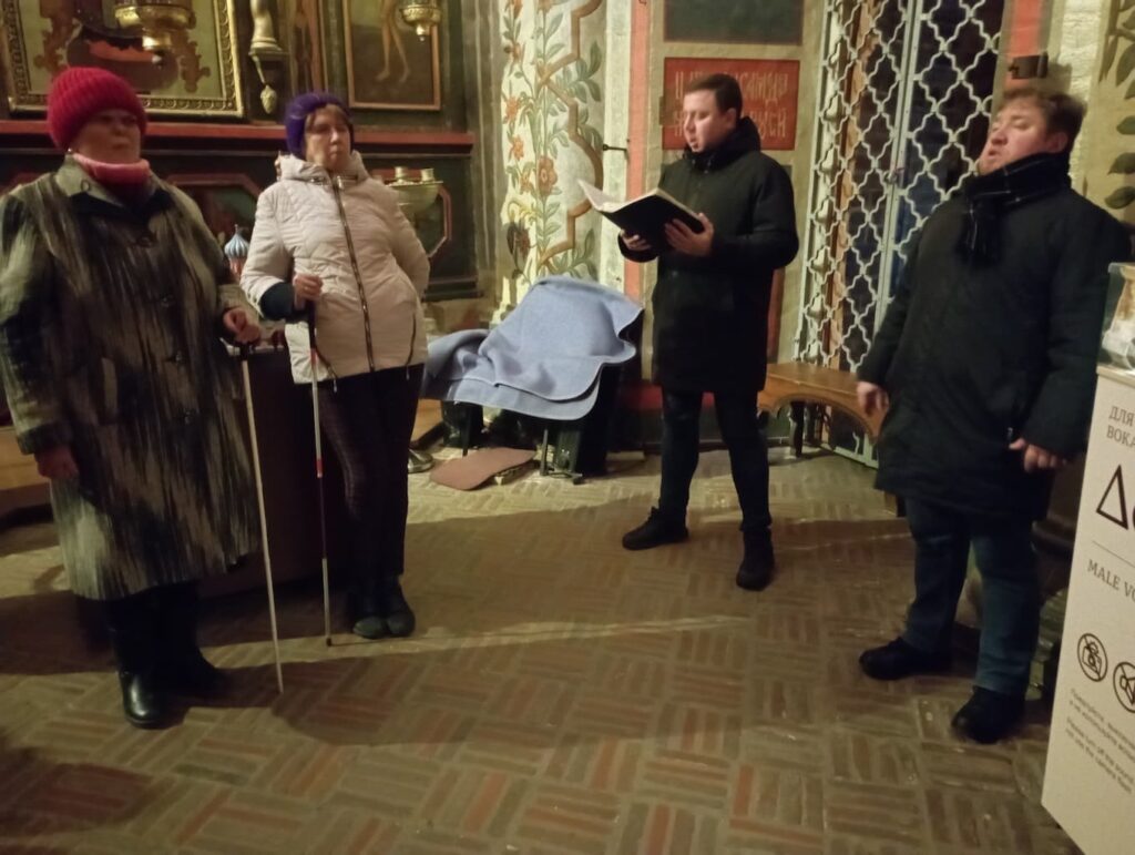 Собор Покрова Присвятой Богородицы, что на Красной площади место притягательное. Памела Трэверс, та самая, что про Мэри Поппинс написала, говорила о соборе, как о нагромождении одного архитектурного кошмара на другой. Однако, у неё не было тактильной модели. А у нас она есть. Именно поэтому незрячие экскурсанты могут разобраться в хитросплетении архитектурных лабиринтов и во всех тонкостях архитектурных украшений девятистолпного храма. Это не считая пристроенной позже церкви Василия Блаженного и шатра колокольни. Тифлокомментирование даёт возможность представить всё богатство красок, узоров и росписи памятника, воздвигнутого по повелению Ивана Грозного. Кстати, царь сам был не чужд творчеству. Известны сочинённые им стихиры. Их можно послушать и сегодня. Но сейчас в центральной церкви поёт замечательный ансамбль духовной музыки «Дорос». Они исполняют более традиционные духовные распевы.