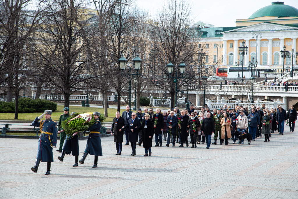 21 марта 2025 года, в рамках проведения Фестиваля самодеятельного народного творчества «Салют Победы», в Москве состоялась торжественная церемония возложения цветов к мемориальному ансамблю «Могила Неизвестного Солдата» у Кремлёвской стены.