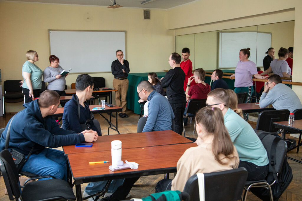 Курс сочетал в себе теоретические лекции и практические занятия. Участники занимались организацией и проведением крупного общегородского мероприятия — молодежного вечера в КСРК ВОС, готовили материалы и записывали передачи на «Радио ВОС», а также знакомились на практике с адаптивными видами спорта.