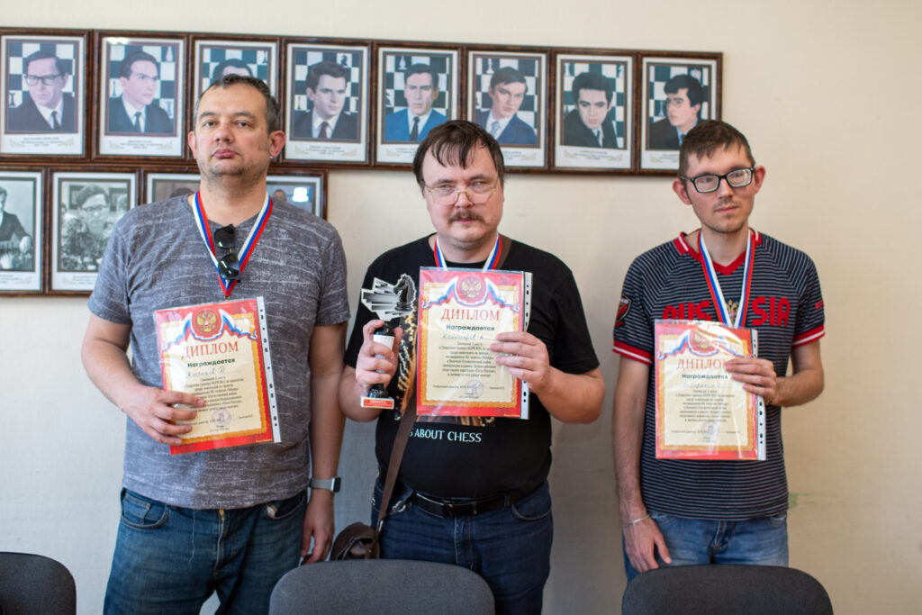 В воскресенье 25 мая в шахматном клубе КСРК ВОС прошли открытые соревнования по шахматам среди инвалидов по зрению, посвящённые 80-летию Победы в Великой Отечественной войне. Турнир проводился в рамках спортивного марафона «Сила России». Соревнования прошли по круговой системе в 9 туров. В результате упорной борьбы первое место завоевал Алексей Комиссаров с результатом 7½ очков из семи. За оставшиеся два призовых места развернулась борьба между тремя участниками, набравшими одинаковое количество очков. Судьба оказалась более благосклонной к Денису Костюкову – он второй. Третье место у Станислава Бабарыкина, а на четвёртом месте расположился самый юный участник соревнований 8-летний Ярослав Кузнецов, нанёсший в последнем туре единственное поражение победителю.