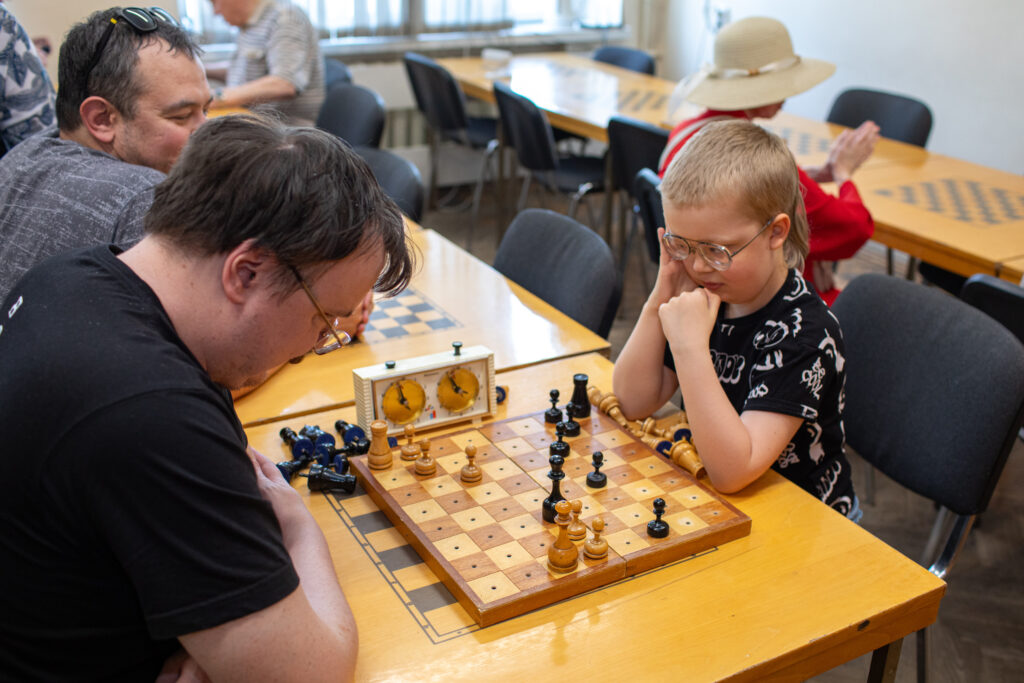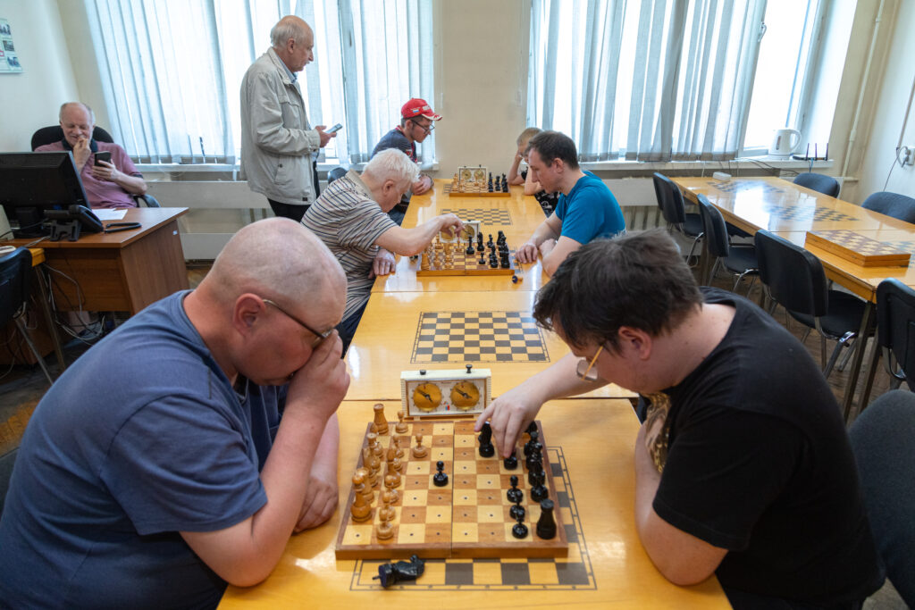 В воскресенье 25 мая в шахматном клубе КСРК ВОС прошли открытые соревнования по шахматам среди инвалидов по зрению, посвящённые 80-летию Победы в Великой Отечественной войне. Турнир проводился в рамках спортивного марафона «Сила России». Соревнования прошли по круговой системе в 9 туров. В результате упорной борьбы первое место завоевал Алексей Комиссаров с результатом 7½ очков из семи. За оставшиеся два призовых места развернулась борьба между тремя участниками, набравшими одинаковое количество очков. Судьба оказалась более благосклонной к Денису Костюкову – он второй. Третье место у Станислава Бабарыкина, а на четвёртом месте расположился самый юный участник соревнований 8-летний Ярослав Кузнецов, нанёсший в последнем туре единственное поражение победителю.