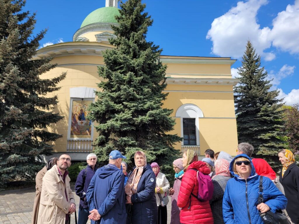 В мае группа москвичей с нарушением зрения посетила Свято-Данилов монастырь. Обитель ведёт свою историю с 13 века. Основал её князь Даниил Александрович – сын Александра Ярославича Невского, в честь сирийского святого Даниила столпника, именем которого князь был крещён. Знакомство с ансамблем монастыря началось ещё на входе. Экскурсанты почувствовали и могли тактильно определить толщину стен, окружающих монастырь, ведь в древние времена это была ещё и крепость. На монастырском дворе группу встретила экскурсовод Мария. Она подробно описала ансамбль, с которым нам предстояло познакомиться: колокольня с подколокольным храмом Симеона столпника, Покровский собор, Троицкий собор. Большое значение для незрячих людей имело то, что были прокомментированы: окраска храмов, их форма, особенности архитектуры, декор и месторасположение относительно друг друга. С мозаичными иконами Троицы и святого князя, расположенными на внешних стенах храмов, незрячие люди смогли познакомиться тактильно. Мария описала и объекты, не предназначенные для посещения, но расположенные на территории монастыря: резиденция патриарха, комитет по международным связям патриархии, а также ювелирную башню и работу просфорни, которая обеспечивает продукцией многие храмы Москвы.