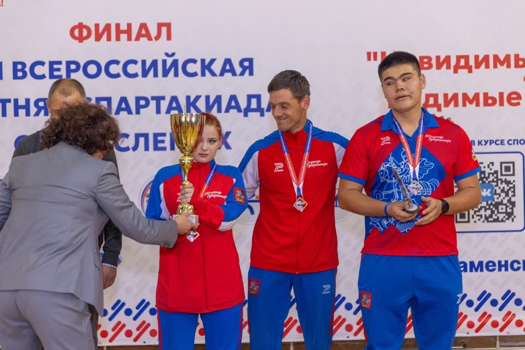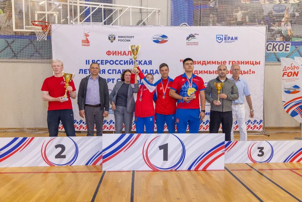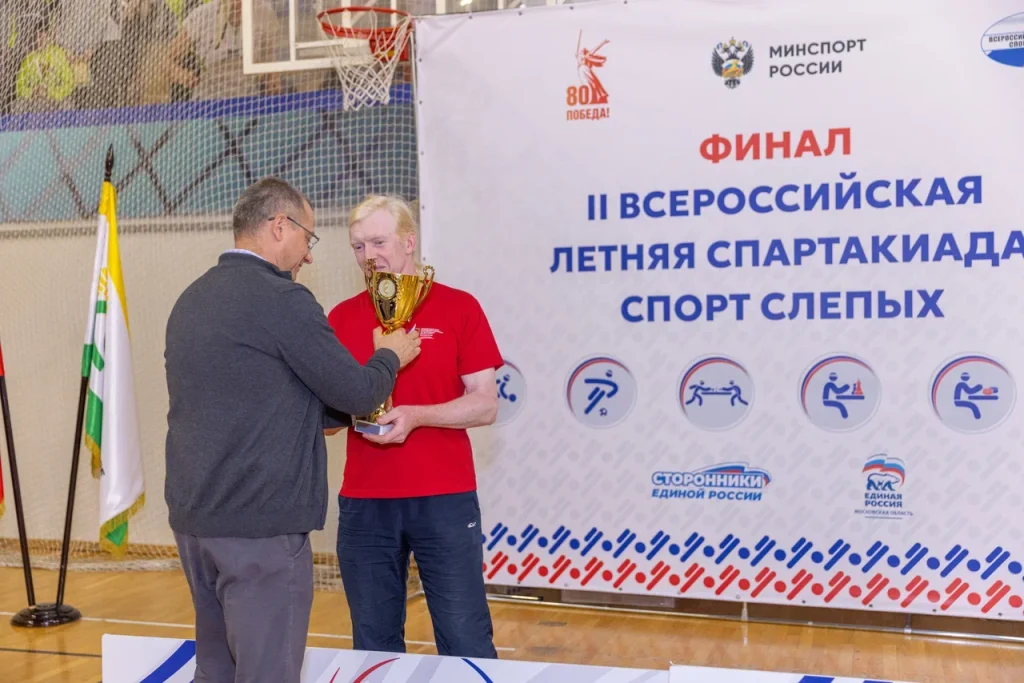 Эту приятную процедуру проводили президент Федерации спорта слепых, трехкратная чемпионка Паралимпийских игр Ольга Владимировна Семенова, вице-президент ВОС Александр Иванович Коняев, главный судья Спартакиады Андрей Михайлович Устинов и директор гостиницы «Сатурн» (там проживали участники соревнований) Дмитрий Германович Додонов. Сколько радости было на лицах чемпионов! Надо было видеть, как устраивали овации медалистам их партнеры по команде! И не только партнеры — даже соперники встречали победителей аплодисментами. Фото и видео на память, теплые рукопожатия, широкие улыбки – церемония награждения превратилась в яркий, запоминающийся праздник. Свою весомую лепту в это внесла и ведущая церемонии Мария Михайловна Ильинская из КСРК ВОС.