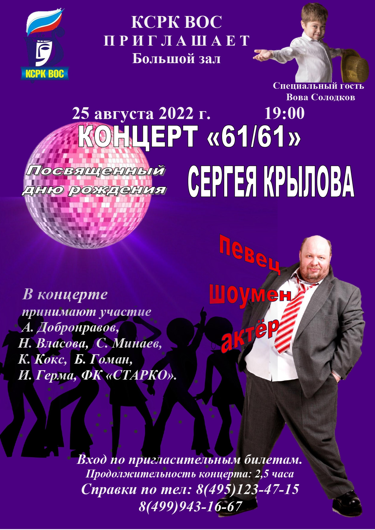 Концерт 61/61 25 августа в 19:00 пройдет концерт, посвященный дню рождения певца, актера и шоумена Сергея […]